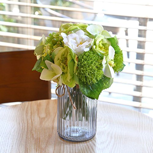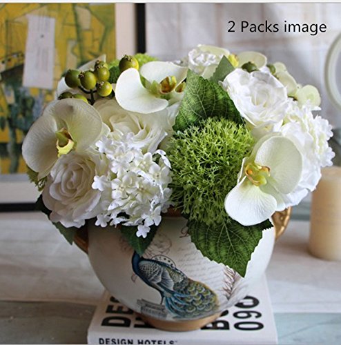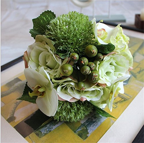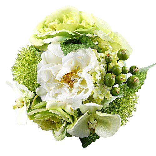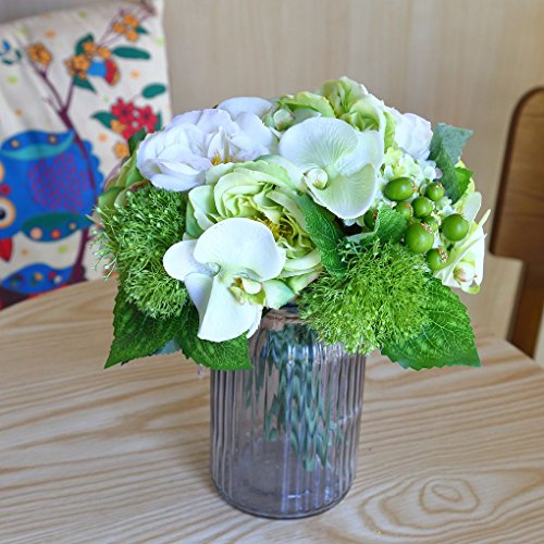 ADolinGo Artificial Flowers Phalaenopsis Orchid Hydrangea Roses 10 Heads Bouquet Wedding Decor (Green)