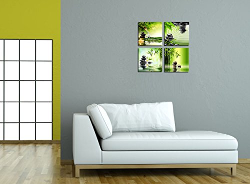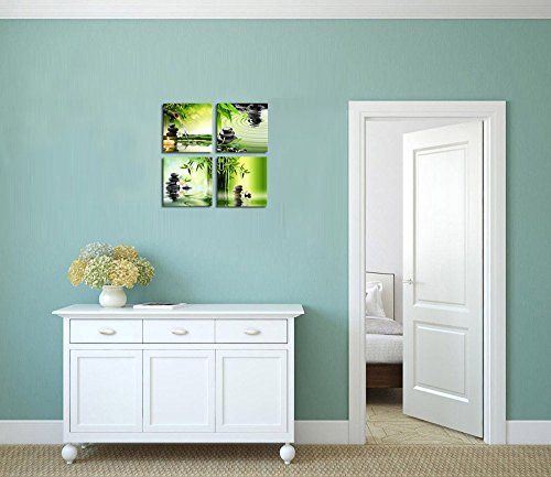 -. Title : The Decor Shop - Canvas P.R.Ints Stones Candle and Bamboo on Water SPA Theme Photo on Canvas Wall Art Framed Modern Decor Paintings Giclee Artwork for Home Decoration 12x12inch
