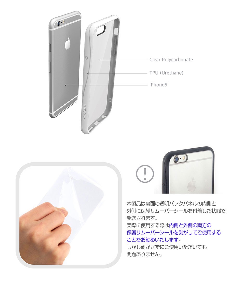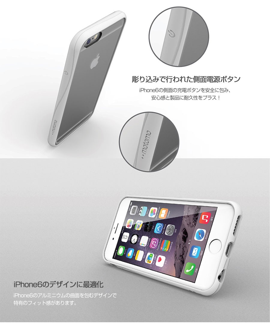 商品説明:iPhone6の洗練されたデザインをそのまま使いながら外部の衝撃から大切なiPhoneを守るmotomoデザインのソフトバンパーケースです!