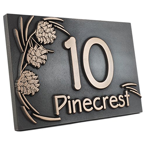 -. Title : Pine Cone Address Plaque 12x8 - Raised Bronze Patina Coated