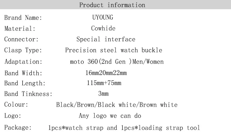 [해외] 품질 가죽 시계 밴드 16 미리메터 20 미리메터 22 미리메터 시계 남성 스트랩 블랙/브라운 시계 밴드 moto 360 (2nd gen) smart watch