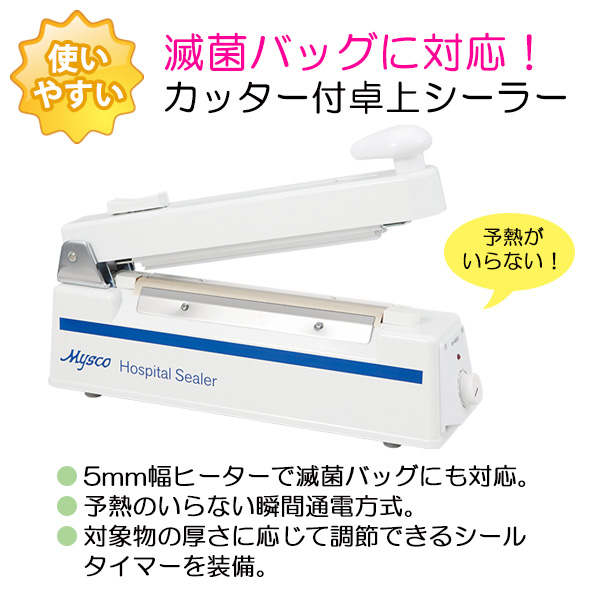 ●滅菌バッグに対応!カッター付卓上シーラー