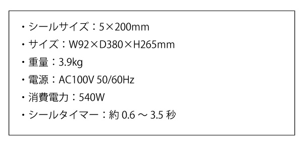 ●シールタイマー:約0.6~3.5秒
