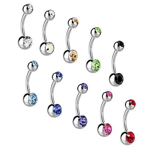 Studio : Uhibros Publisher : Uhibros Binding : Jewelry Product Description Uhibros Jewelry: Your Reliable Choice of Fashion Jewelry Affordable prices and a luxurious appearance.Uhibros Fashion Jewelry Stainless Steel Belly Button Ring 10 pcs different color to satisfy your daily wearing. High quality stainless steel Belly Button Ring for women girls. A good gift for your girlfriend, wife, mother, couple, valentine, sisters or just a friend etc. Also it is a good choice for Christmas, Birthday, Thanks Giving, Black Friday, Cyber Monday, or Mother's day gift. 0