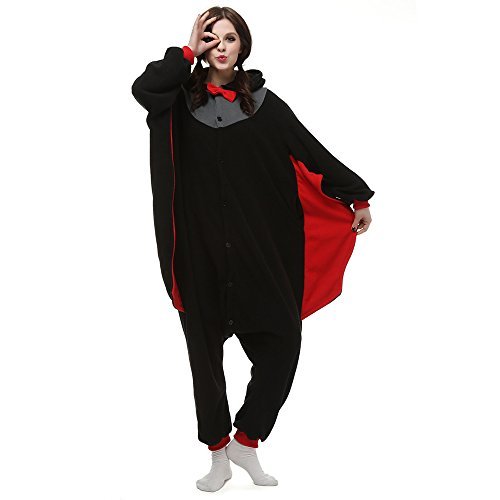 -. Feature : Made from super soft plush fleece that you'll feel very comfortable and warm for lounging around on cold day in this animal pajamas.With pockets you can hide your hands, or store the Phone and Wallet / The adorable and eye-catching animal designs all feature a hood with eyes, teeth, nose and tails for full effect. The button up closure allows you to quickly get dressed while the loose fit gives you the flexibility to easily wear over your existing clothes or jacket / This fun bat pajamas will make sure you get noticed at your Halloween, Christmas, Birthday or Pajama Parties / High quality and cute design make it a perfect gifts for your family and friends / Unisex sizeing S (Height: 4'9"- 5'3"), M (Height: 5'3"- 5'7"), L (Height: 5'7"- 5'11"), XL (Height: 5'11"- 6'3")