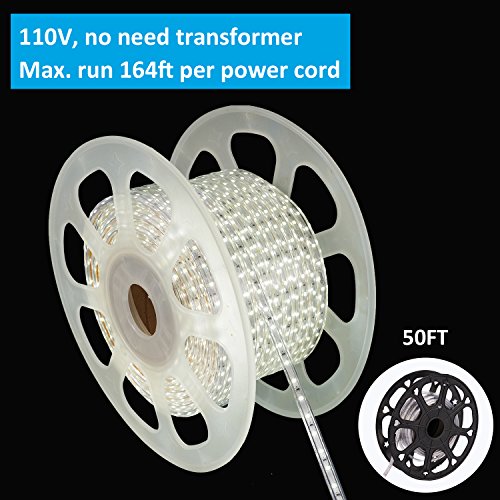 shine decor dimmable Led Strip Lights, Rope Light, High voltage 110V-120V, SMD 2835 60Led/M, 50ft/roll, 6500K Cool White, With plastic tube cover, flexible indoor/outdoor use, Accessories included