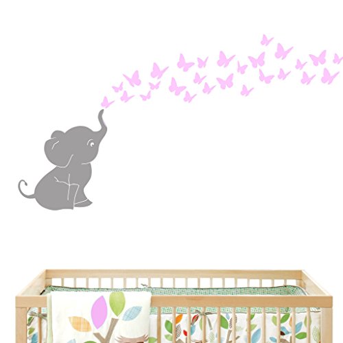 Decal the Walls Elephant with Butterflies Wall Decal, Soft Pink
