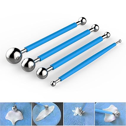 - 4 cake tools with different size balls,ideal for shaping, frilling petals and leaves that have been made with Gumpaste, Sugar Paste or Marzipan etc.