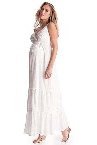 The Melody is a beautiful white maxi dress that is perfect for maternity photo shoots, beach vacation or even a casual wedding. Dress it down with a pair of flip flops for a cool beach look or for or dress it up with wedges and statement jewelry. This lace trimmed floor length dress features full coverage at the back and adjustable elasticated straps. 100% Cotton Voile Machine or hand wash cold/Hang to dryFeature