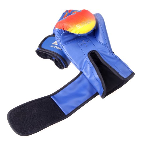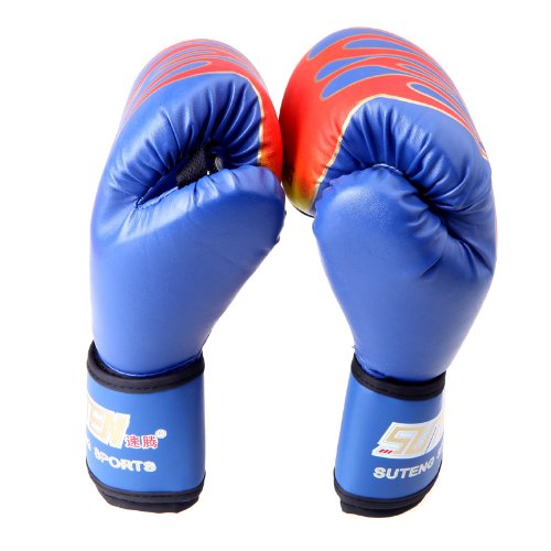 -. Title : 1 Pair PU Leather Boxing Gloves MMA Flame Muay Thai Training Punching Sparring Fighting 490g - Blue
