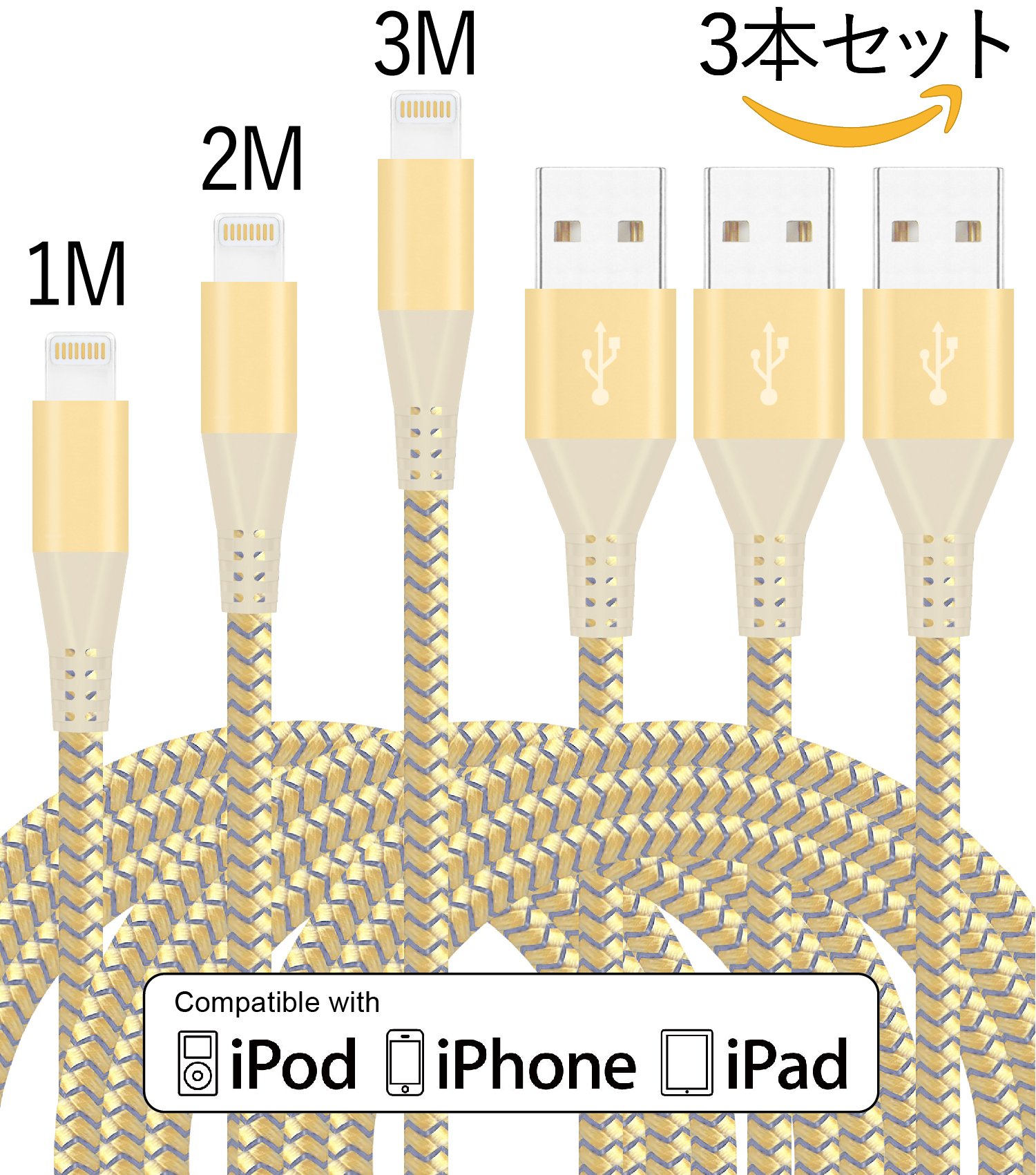 3 sets 1M / 2M / 3M High speed nylon knitting fast charging lightning USB cable.