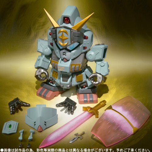 王家の谷に眠る伝説の聖機兵がSDXで遂に復活。 付属パーツにより封印状態から戦闘バージョンにチェンジが可能! 【ガンダムが搭乗するガンダム】として以降のSDガンダム外伝シリーズに大きな影響を与えた聖機兵ガンレックスが、従来品対比、全高2倍以上のBIGスケールで登場!(SDXスペリオルドラゴン対比) 装備となるライトソード・ライトシールドはクリア素材を使用し、ビーム質感を完全再現!! 歯車のディテールが施された肩部と脚部にはダイキャストを採用しズッシリとした重量感を演出。 本体内部には、2011年7月16・17日に秋葉原で開催された『魂フェスティバル2011』で商品化の決定を発表した 『SDX 灼熱騎士ガンダムF91』を搭載するギミックを内蔵、作中でガンレックスが始動した名場面を再現することができます。Feature