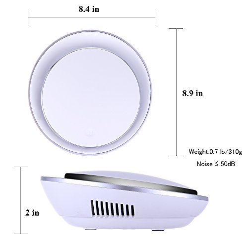 - Easy to Install : Plug the device into the car cigarette lighter or adaptor, with USB cable. Also could be connected with computer or the charger. Easy to change the filter net. Mini and Portable Design (8.9 x 8.4 x 2 inch), Light weigh (11 ounces).
