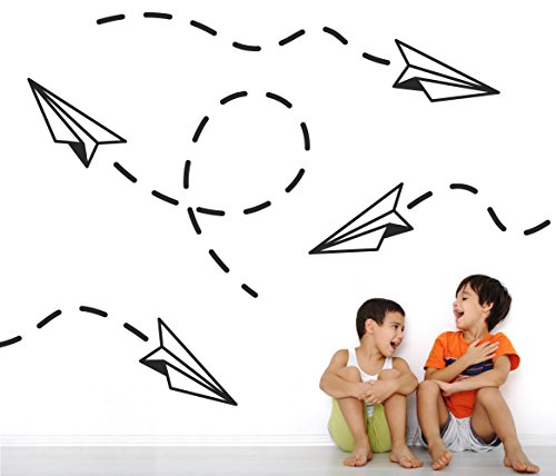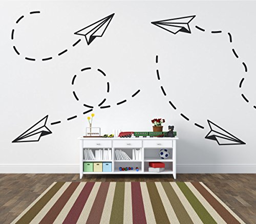 DIY Kids Modern Wall Art Paper Airplane Decals Removable Vinyl Home Decor Nursery Stickers [Set of 4] (Black, 30x33 inches)