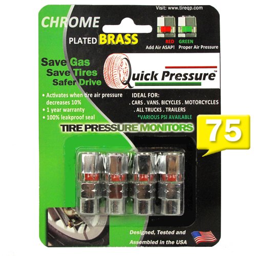ReleaseDate : 2015-05-06 Studio : Quick Pressure Publisher : Quick Pressure Binding : Automotive Product Description 1. This product is for monitoring tire pressure: if the pressure of tire is 10% less than required, the tire pressure indicator will show red, otherwise it will show normal which is green. Each monitor is calibrated to the specified PSI, if your tire is under inflated, it will not show green. For example, if your recommended tire pressure is 40psi, then you should purchase our PSI 40 monitor caps. If your current tire pressure is under-inflated, when you install our monitor cap onto your tire, the cap will not show full green. (It doesn't check your tire over inflated) 2. Chrome Plated Brass 3. Patented, designed, assembled and tested in the USA. 4. The monitors are available in chrome (plated brass valve body) to complement any wheel and fits passenger vehicles, SUV's, trucks, trailers, motorcycles, ATV's, RV's, commercial vehicles, and bicycles. 5. After installation, please drive 10 miles or more to activate the monitors. 6. Motorcycles and bicycles: Please check for proper clearance between monitor and brake system. 0