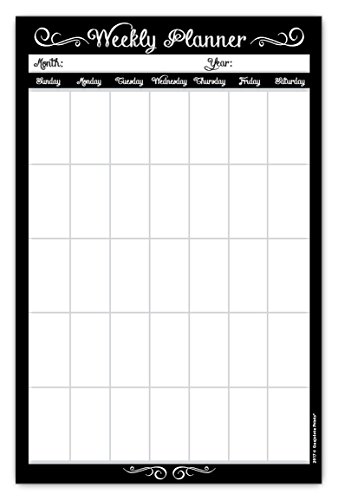 -. Feature : Guajolote P.R.Ints Magnetic Notepad. 50 Sheets. / Weekly Organizer. Black and White Chalkboard Style P.R.Int. Simple design without pictures or cover. Text only. / 6 x 9 Inches. Durable Chipboard Backing. Daily writable rectangles are 1.3 x .75 inches. / This Note Pad Planner is glued on top, every page easily tearable at the end of each month. / Perfect to write on with pencil, pen or marker.
