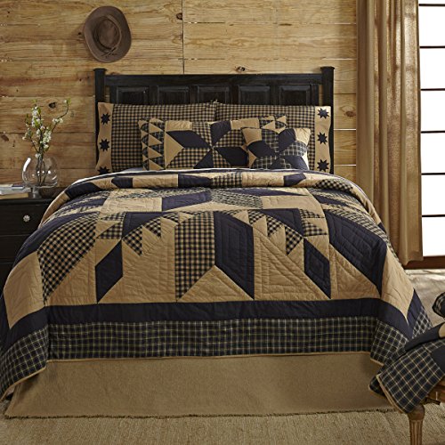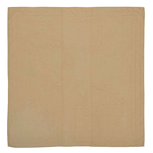 Studio : VHC Brands Publisher : VHC Brands Binding : Kitchen Product Description FEATURES ? Patchwork ? Hand quilted, machine pieced ? Stitch in the ditch and echo hand quilting ? Traditional 8-point star center surrounded by feathered star patchwork border ? Straight edge with .5" bias cut solid tan fabric ? Reverses to solid tan fabric SPECIFICATIONS ? Dimensions: L105xW120 (in) ? Approximate Weight: 10.5 (lbs.) ? Outer Material: 100% Cotton ? Inner Material: 100% cotton batting ? Made in India CARE ? Machine wash separately, front load commercial washer ? Cold water, gentle cycle, no chlorine bleach ? Do not tumble dry ? Do not dry clean without first testing a small portion ? This product may not withstand commercial cleaning chemicals or process due to the fragility of fabrics and handmade nature. 0