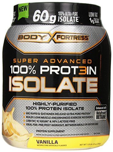 -. Title : Body Fortress Super Advanced 100% Protein Isolate, Vanilla, 1.33 Pounds by Body Fortress
