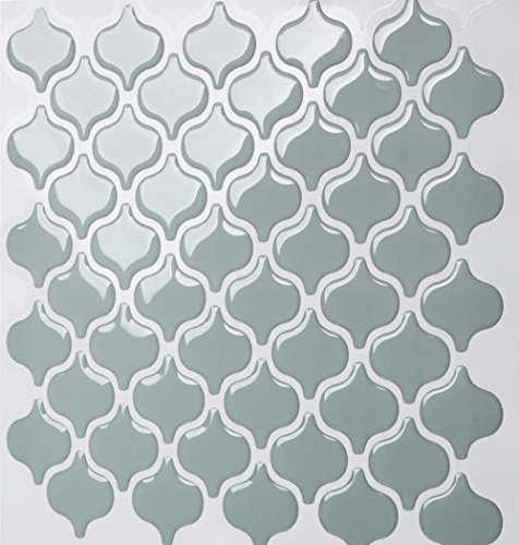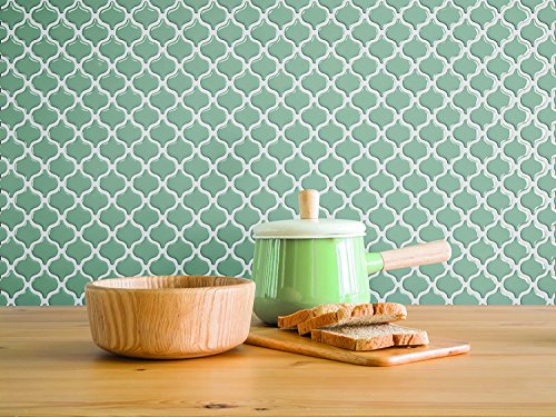 Tic Tac Tiles Anti-mold Peel and Stick Wall Tile in Damask Jade (10)