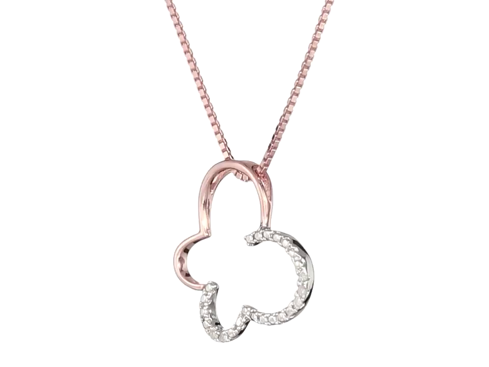 Two-Tone Sterling Silver and 18k Rose Gold Over Silver Diamond Accent Butterfly Pendant Necklace and Earrings Jewelry Set