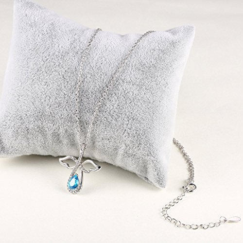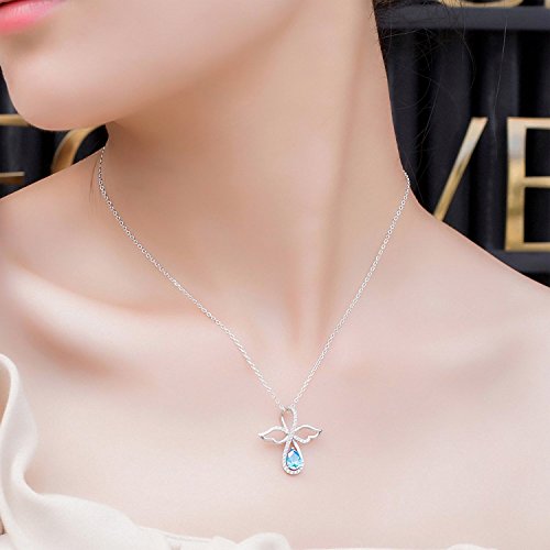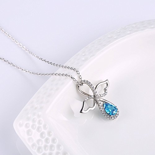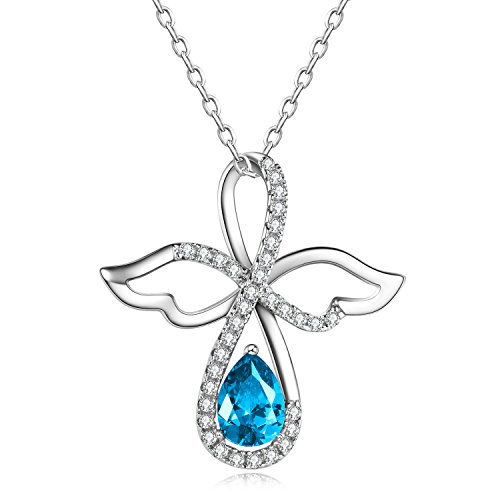 Perfect your look with this sterling silver necklace. A pear-cut created blue topaz and created white sapphire accents adorning a infinity angel design make it a captivating choice.