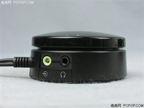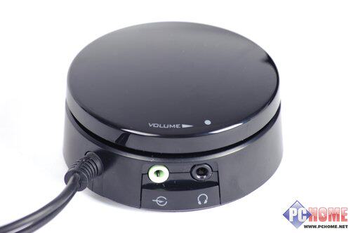 此外,线控上面的顶盖就是刚才我们说到的它的音量调节旋钮了。此外,该线控器集成了电源指示、辅助输入接口,方便链接各种设备,例如MP3、DVD、PC等。