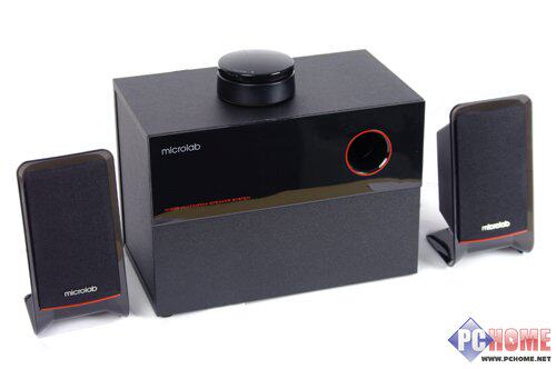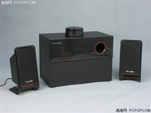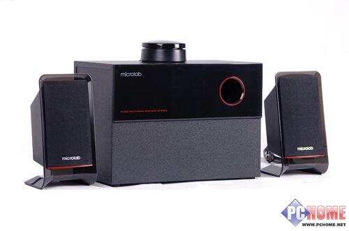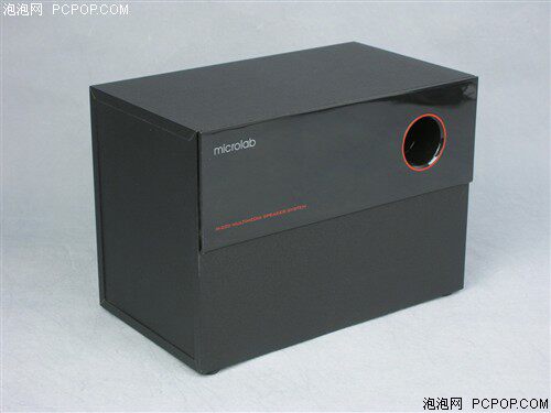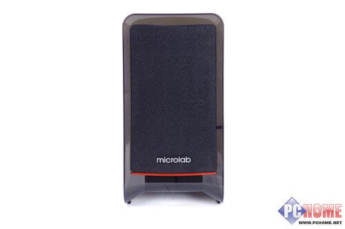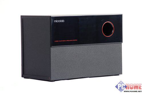 除此之外,它箱体的正面还有个半面遮板。其表面采用烤漆工艺处理,镜面度很高。此外,其上还点缀以白色的“microlab”的LOGO以及红色的“M-200”的文字以圆环。如此搭配,看上去很是漂亮。而这,曾在麦博的X系列产品中由多次使用。