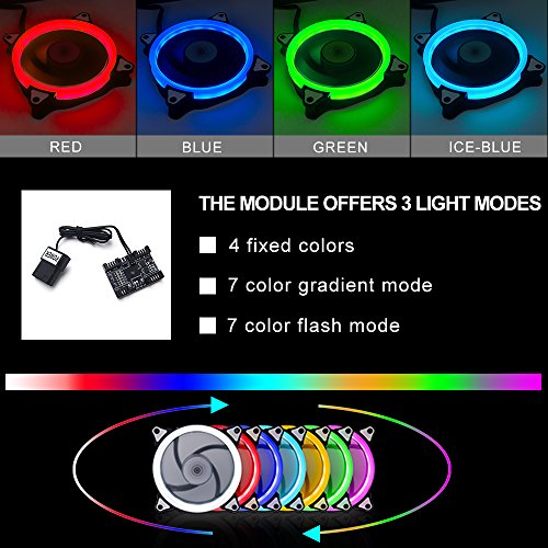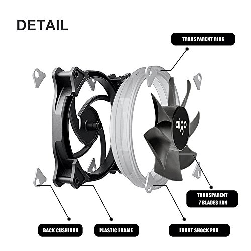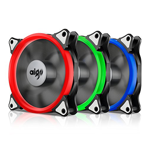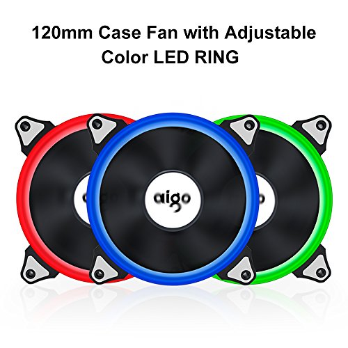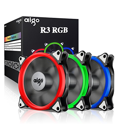 Aigo, R3 3-Pack RGB LED 120mm Adjustable Color Case Radiator Fan,Quiet Edition High Airflow Adjustable Color LED Case Fan for Computer Cases, CPU Coolers, and Radiators