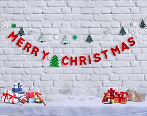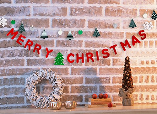 Features: 100% Brand New, High Quality and Durability! Material: Non-woven fabric Color: Multi-color(Green White Red) The whole length: Approx. 3meter Each package include: 1*Christmas Letter banner*rope 1*Tree banner*rope 2*snowflake clips 1opp bag When not in use, store in the convenient storage bag or box. 0
