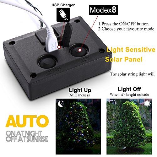 - [Water Resistant] - Every light beads shines ultra striking luminance under rain with 8 MODES, 12m flexible long string of 1.5mm dia. Preserve the best electric transmit without loss, ideal outdoor decorative ornament; [Memory function] - It's convenient to remember your last choice after sudden power failure, no trouble to reset