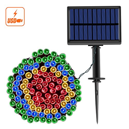 Solar String Lights with USB Charge, BELK 39ft 100 LED Waterproof Outdoor Starry Fairy Lights for Patio, Lawn, Garden, Fence, Backyard, Christmas Tree Decoration and Indoor Party Ambience,Multi Color