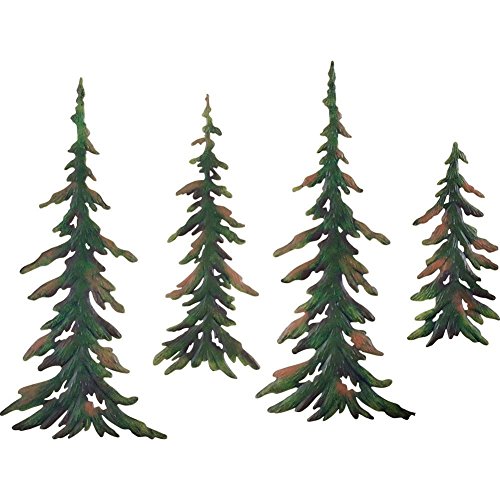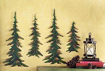 Studio : 11872 Publisher : 11872 Binding : Kitchen Product Description Evergreen Wall Decor: Transform any room-from the bath to the den-into a cozy, woodland getaway. An entire pine forest has been recreated in subtly dimensional metal and painted to give it a "walk in the woods" look you'll enjoy all year round. Comes with a hook on the back for easy hanging. All four included. Iron. Two big trees: 11"W x 24 1/4"H; Smaller tree: 7"W x 19"H; Smallest tree: 5 1/2"W x 14"H. 0