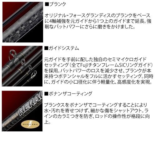 지오《―루마이티》.감동적인 사용감을 약속한다「기분 좋다」로드. ●combat 스틱 헤라클레스.어디까지나 터프 유스로 견디고, 강인한 파워를 가지는 로드.가벼워도깨지기 쉬운 로드는 필요없다.무서운 파워와 상반하는 경이적인 가벼움을 겸비,《부레》가 없는 정확하기 짝이 없는 캐스트 성능과 원투 성능을 들 것.모두를 셋팅 하고, 실전으로 사용 했을 때의 쾌적성,조작성 이라고 하는 밸런스를 궁극까지 높였 진짜 의미 에서의 가벼움.그리고 데카 버스에 굴하지 않는 참된 파워.이러한 더없게 엄격한 요구를 모두 완벽하게 뛰어 넘게 해 준 것은,헤라클레스 크로스 제법이었다.이 버스 로드 사상최초의 꿈의 제법에 의해헤라클레스는「강철의 육체와 마리의 가벼움」를 손에 만들어 넣음(담는 그릇·상자 등)다