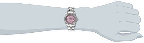 -. Feature : Pink, mother-of-pearl, dial genuine diamond and silver-tone pyramid hour markers / Crystals fill the silver-tone, stainless steel, bezel / Japanese-quartz movement / Case Diameter: 26mm / Water resistant to 99 feet (30 M): withstands rain and splashes of water, but not showering or submersion