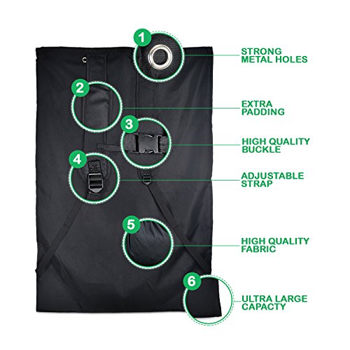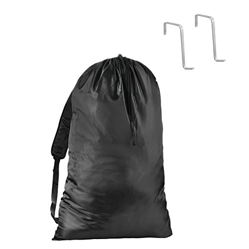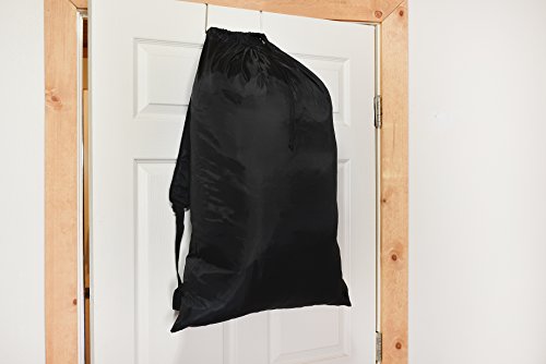 Hanging Laundry Bag | Bookbag Shoulder Straps| Reinforced Stitching | Behind The Door Storage (Large, Black)