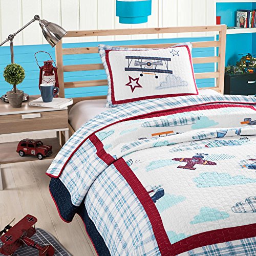 Expert Craftsmanship: Airplane Vehicles Patchwork Quilt Bedding Set keeps your filling uniform, even after washing