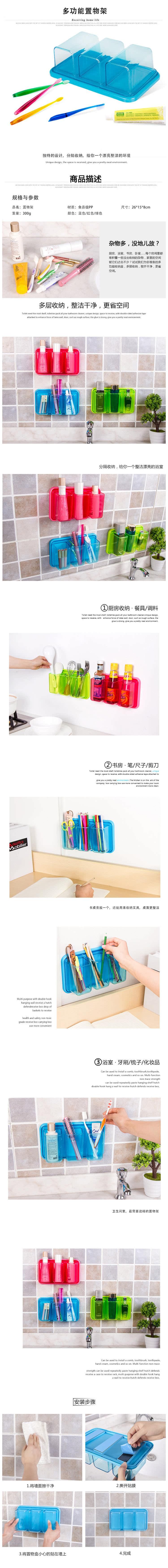 多用自粘式墙面置物架 强力粘胶厨房浴室杂物收纳架 卫生间整理架