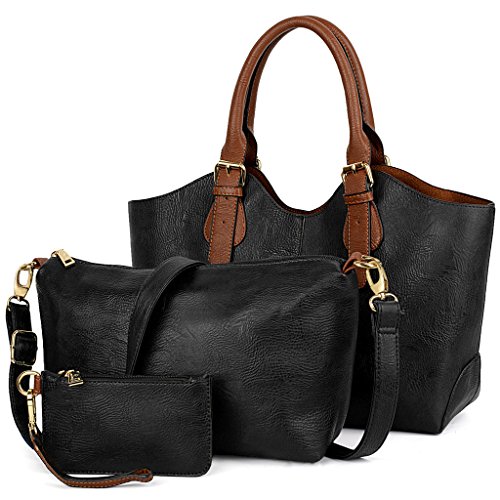 -. Title : UTO Damen Handtasche Set 3 Stücke Tasche PU Leder Shopper klein Schultertasche Geldbörse Trageband