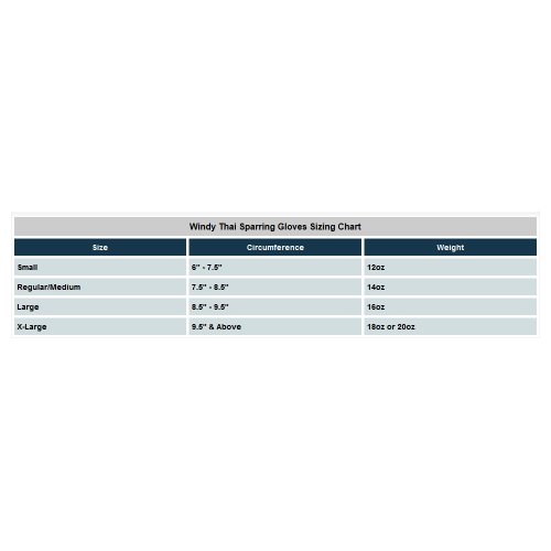 Product DescriptionWindy Muay Thai sparring gloves are handcrafted in Thailand with multiple layers of protection.0