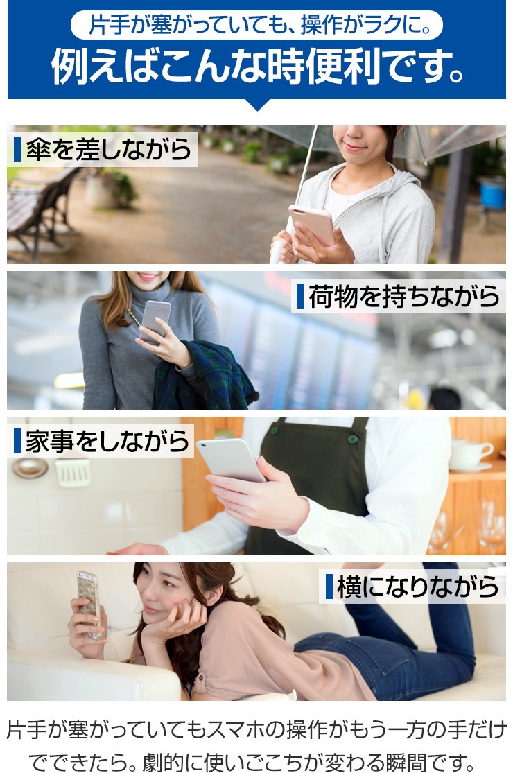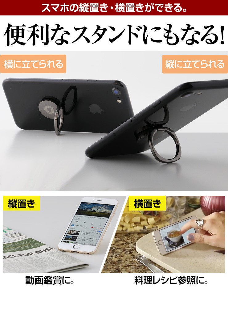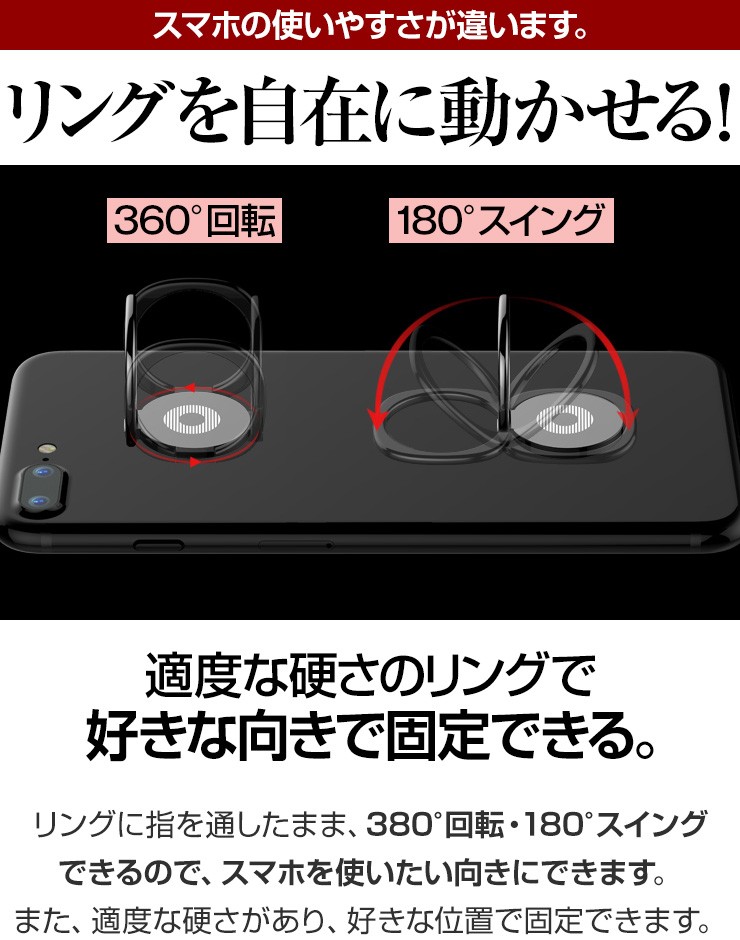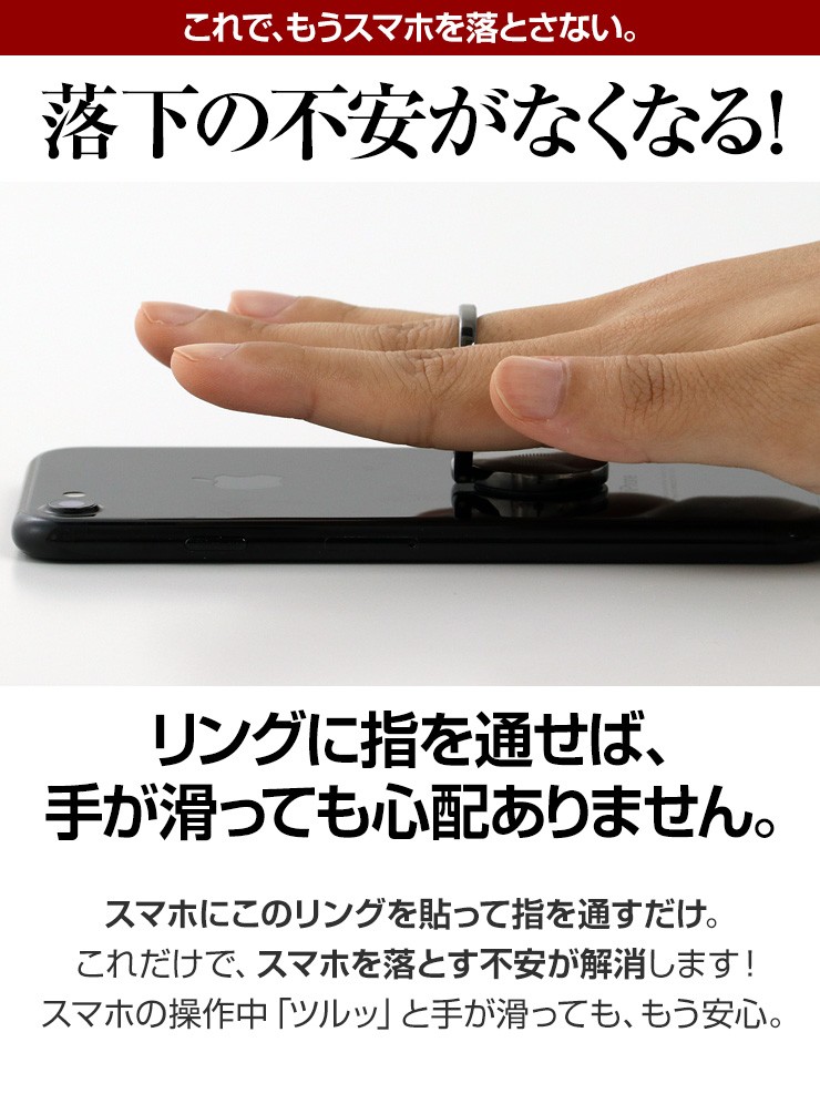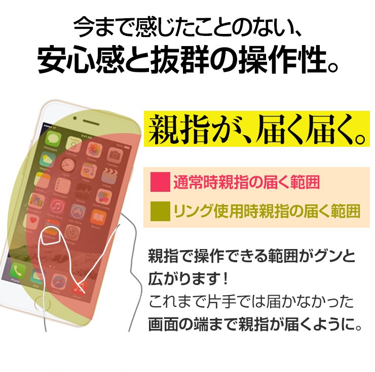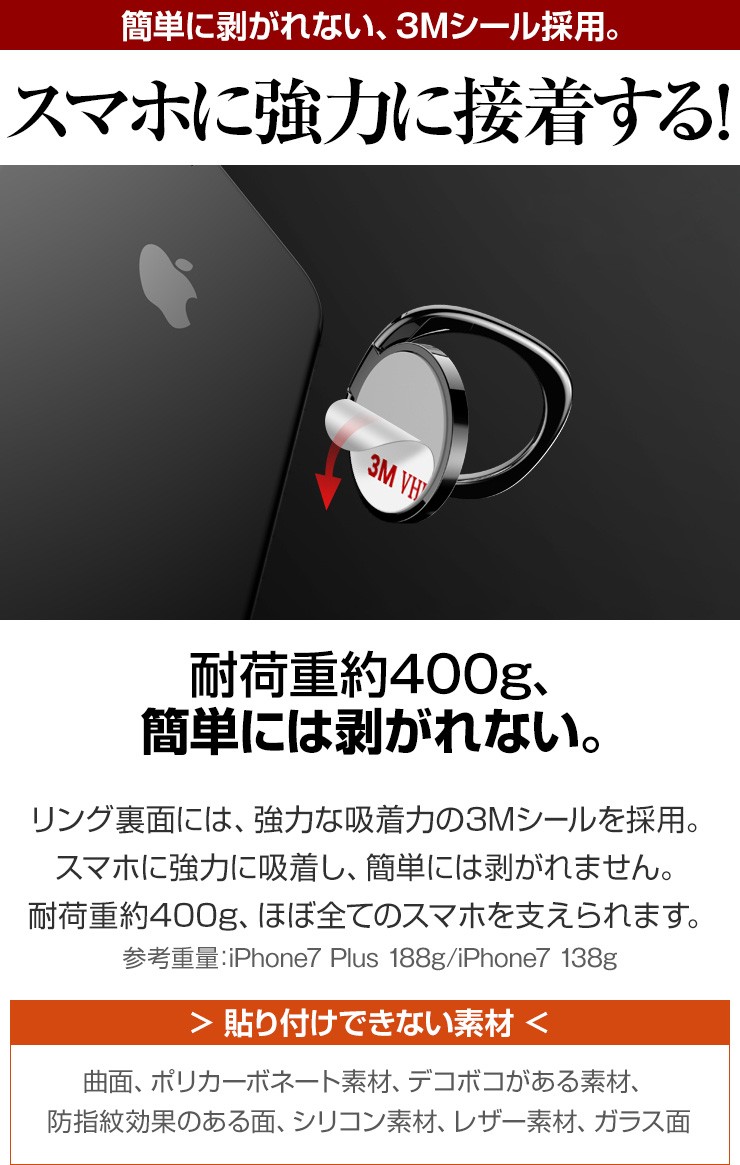 | ご注意事項 | ※使用前に汚れを拭き取ってから本製品を接着してください。 ※裏面シールは1度使用したら再利用できません。 ※iPhone8、8 Plus、Xには非対応です。 ※曲面、ポリカーボネート素材、デコボコがある素材、防指紋効果のある面、シリコン素材、レザー素材、ガラス面には取り付けできません。 ※ケースに接着する際は、ケースの材質がはがれないよう注意してください。 |