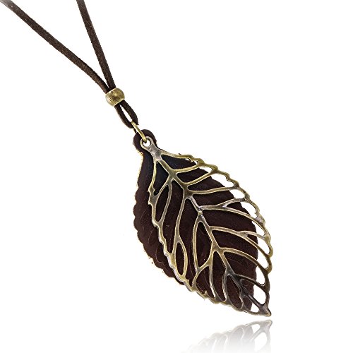 -. Feature : 木の葉が胸元を飾ります。大人っぽく、可愛く・・・服装によっていろいろ組み合わせてください / 材質:木の葉(金属…合金 革…合成皮革)  紐…合成皮革 / 木の葉の大きさ:高さ約7cm 幅約3.5cm / 巾着袋付き