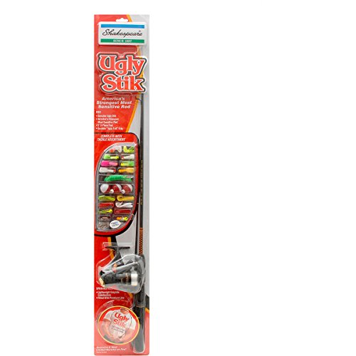 ReleaseDate : 2012-06-15 Studio : Shakespeare Publisher : Shakespeare Binding : Sports Product Description Unsurpassed in strength and sensitivity since 1977, the Ugly Stick rod has been the choice of anglers everywhere. Ugly Stick rods are the most dependable rod you can use, wherever you are fishing. Millions of satisfied anglers cant be wrong! Features:- Ugly Stick freshwater spinning rod with durable EVA handles- graphite spinning reel with ball bearing- pre-spooled with specifications:- mono capacity yd/lb: 195/4 115/6 100/8- baring count: 1- rod power: light- rod length: 5'- number of pieces: 2- technique: spinning- packaging: kit with tackle included- line rating: 2-6- reel handle position: right/left 0