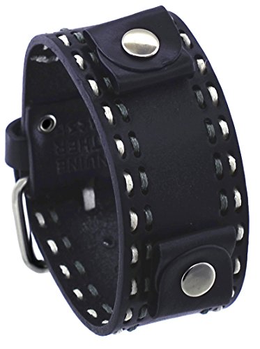 -. Title : Nemesis #DSTH 22mm Lug Width Black Wide Leather Cuff Wrist Watch Band with Stitching