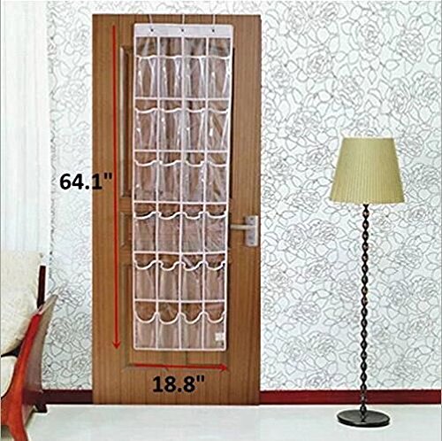 -. Binding : Kitchen -. Brand : Drhob -. Color : Multicolor -. EAN : 0727670732733 -. Feature : simple shoe storage solution / 24 clear pockets organizes up to 12 pairs of shoes / Frees up floor space by hanging over the door See through pockets for quick visibility / Also great for organizing bathroom and cleaning supplies, toys and crafts / Over the door hooks included (3); adjustable to accommodate varying door thickness Dimensions: 64 in L x 18.5in W -. IsAutographed : 0 -. Label : Drhob -. Manufacturer : Drhob -. MPN : B01JLHAMRS -. PartNumber : B01JLHAMRS -. ProductGroup : Home -. ProductTypeName : HOME -. Publisher : Drhob -. Studio : Drhob -. Title : Drhob pvc Shoes Away Hanging Organizer Organize 24 Pocket Shoe Storage Rack -. UPC : 727670732733