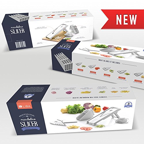 - Feature : THE #1 TOOL FOR HEALTHY EATING: Quickly turn bland and boring vegetables into the most mouth watering part of your whole meal by "redesigning" your food with 5 slicer settings / SAFEST SLICER ON THE MARKET: Built using Food-Safe ABS plastics to keep your food clean & chemical free, Slip-Resistant Rubber Footing to prevent slippage accidents, and finger saving Slice guards all in one slicer! / CUTS PREP TIME IN HALF: Perfectly julienne whole carrots in 3 seconds or less. Paper thin potato slices for homemade potato chips? Under 2 seconds. Welcome to the 21st century of cooking. / CHEF APPROVED KITCHEN TECHNOLOGY: Durable blades, high grade stainless steel. Strong enough for a commercial kitchen. Convenient enough for a home cook. / TRY IT RISK FREE FOR 90 DAYS: Try our LiBa mandoline slicer for a full 90 days and if you don't absolutely love it then you PAY NOTHING! Limited time only.