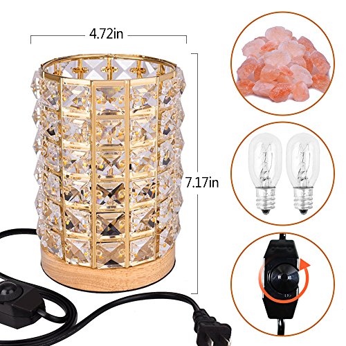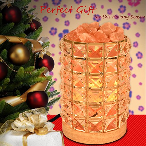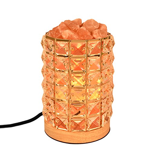 Acrylic diamonds cylinder and wooden base made of this fashion salt lamp that can hold lots of salt crystal chunks. The brightness of the salt lamp is dimmable with the help of the controller on the long cord.