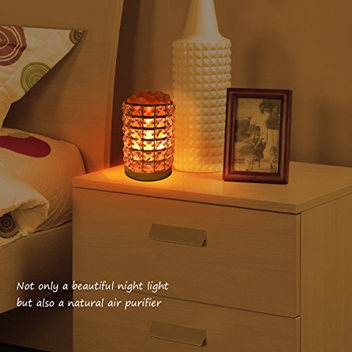 Himalayan salt lamp emits soft natural orange glow, creates lovely and romantic atmosphere. Cylinder decorates with Acrylic diamonds is quite beautiful to look at especially when light up at night.