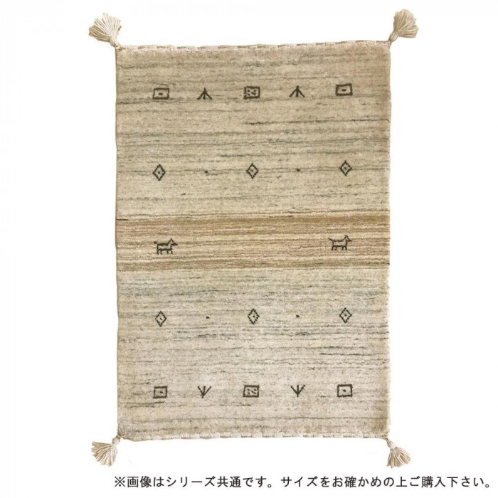 手機織機で丁寧に織り上げ、使用時間の経過とともに味わいが深まる「ギャッベ」。とても細くやわらかくやさしいタッチ感が魅力のウールを100%使用。冬はもちろん夏にも適しておりオールシーズンご使用いただけます。