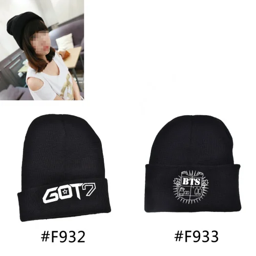 케이팝 GOT7 BTS Bangtan 소년 같은 스타일 팬 만든 힙합 블랙 니트 모자 따뜻한 비니 모자