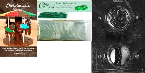 Cybrtrayd Christmas Ball, Church Chocolate Mold with Chocolatier's Bundle of 25 Cello Bags, 25 Green Twist Ties and Chocolatier's Guide